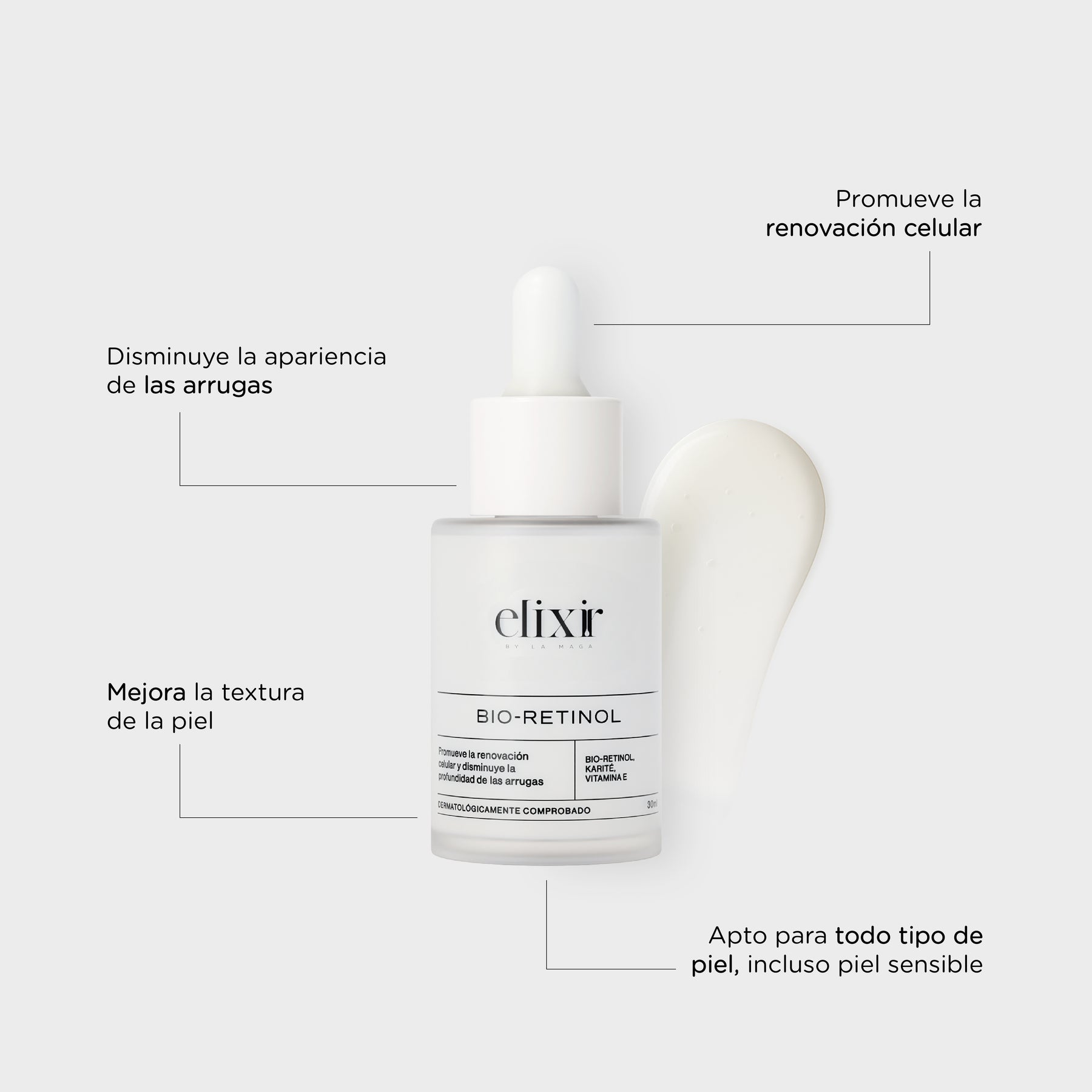 El Suero Facial de Bio-Retinol es una fórmula de origen vegetal enfocada en combatir principalmente los signos del paso de la edad. El Bio-Retinol promueve la renovación celular, la producción de colágeno y elastina, ayudando a disminuir las líneas finas de expresión y la profundidad de las arrugas.