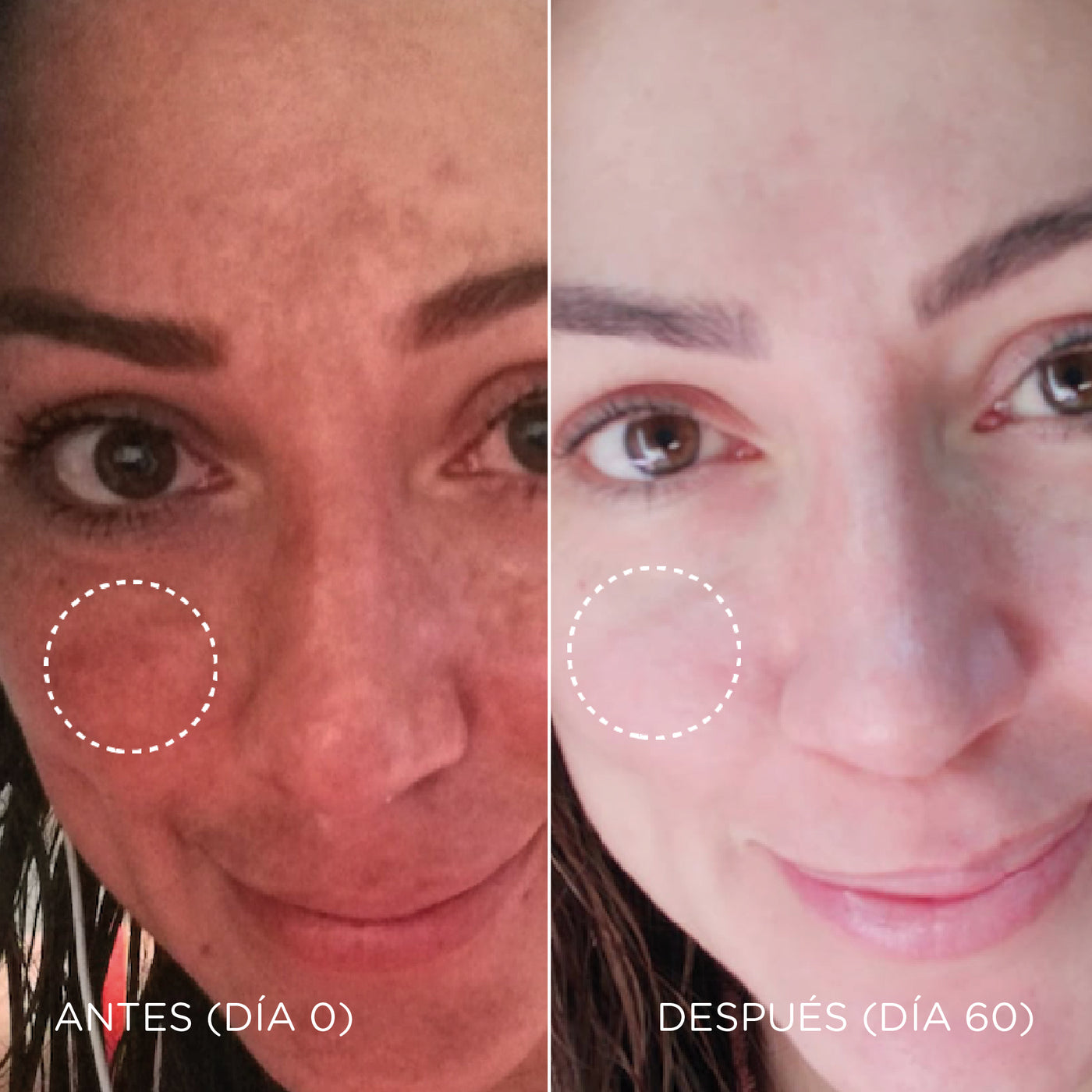 Nuestra línea antimanchas, que incluye el Tónico Iluminador Aclarante que es el despigmentante más potente, tienen como propósito iluminar y emparejar el tono natural de la piel, lo que permite que las manchas mejoren su apariencia. También debemos tener en cuenta que si nos descuidamos pueden volver a aparecer, lo ideal es adaptar rutinas de cuidado para controlarlas y que estas no empeoren.